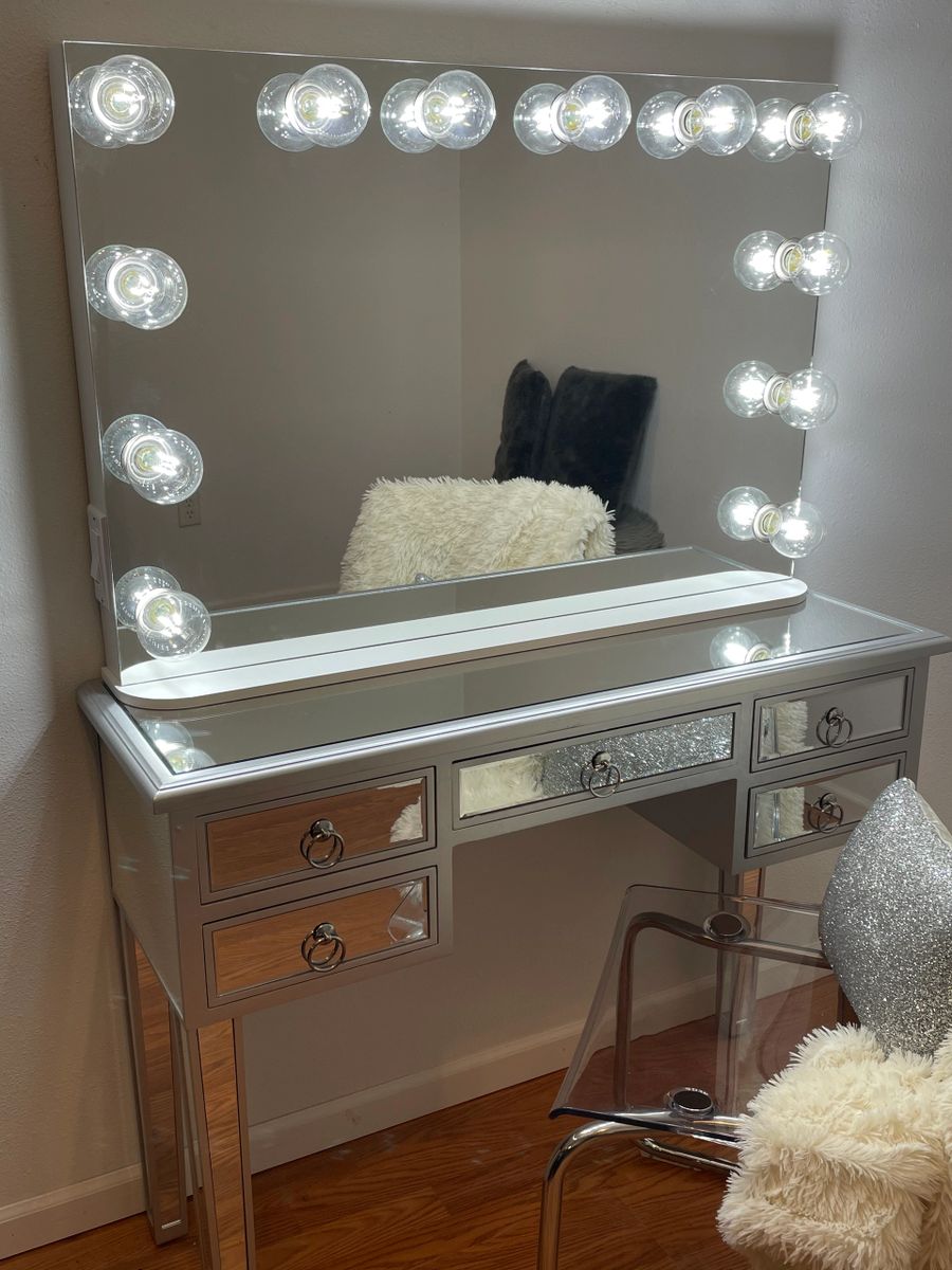 Customization is available in different 21st century and contemporary american hollywood regency vanities. Amazon com vanity j hollywood lighted makeup vanity mirror. Just look for a small table or desk that you do not use, or search for something used and reasonable 12 photos gallery of: The benefits of having an illuminated desk mirror are that you will receive the best light to see your reflection. Hollywood classic xl vanity mirror: Measure the height of the hollywood vanity mirror with lights and add 2 inches to the length of the fabric that will be the dress. Love the mirror , went well with my vanity desk i purchased. I hope you enjoyed this super affordable under $20 diy vanity mirror with lights. Hollywood vanity mirror with lights and dimmer, lighted makeup mirror for vanity table, chende. The vanity mirror!reason for making this? Chende hollywood standing makeup vanity mirror with lights. You can place this makeup mirror on your desk or hang on the wall to fit with your various decoration. Nitin lighted vanity, hollywood makeup mirror with touch control design g152.